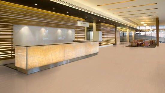 Featuring Bfl fire rating, ideal for evacuation routes. The Bfl rating is achieved without flame retardants; thanks to its natural ingredients. A creative, dynamic pattern featuring directional linear design, ideal for creating a sense of direction in corridors and open areas. One of the most sustainable flooring solutions on the market, our linoleum is made with up to 97% of natural raw materials. Treated with our unique xf²surface protection for extreme durability, easy cleaning and cost-effective maintenance.