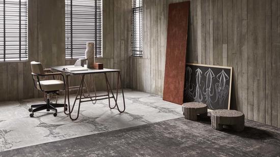 A beautifully authentic weathered effect is achieved with six base colours – Earth, Sand, Moss, Cosmos, Charcoal and Violet – injected with layers of light and shade. The collection reflects the emergence of multi-functional spaces for work, hospitality and leisure, with creative solutions that satisfy a more holistic set of conscious and subconscious needs.