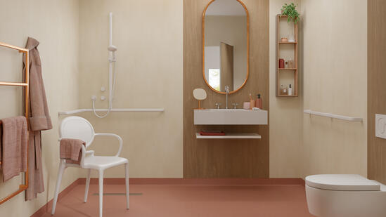 Granit Safe.T is a durable flooring solution for heavy-traffic wet areas where safety is of utmost importance. This anti-slip flooring provide a confident grip for bare feet and shod, even when covered with soap and water. And to keep it always clean, SafeT Clean XP surface treatment protects it from stains and eases maintenance. The colours selection are specially designed to coordinate with the walls and accessories of the wetroom system.